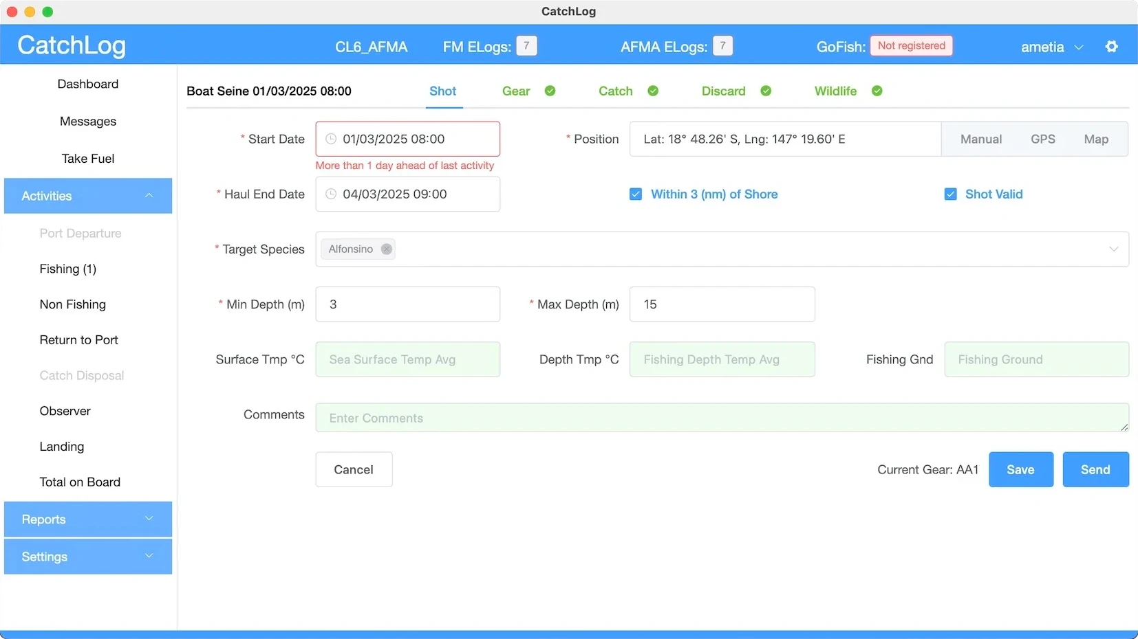 CatchLog is a modern electronic logbook solution installed on board the vessel that provides easy and quick way for you to manage your fishing activities. CatchLog can be used together with FleetManager to monitor your vessels from the office via a website. CatchLog runs on all supported versions of Windows, from Windows Vista to the last version of Windows 10.